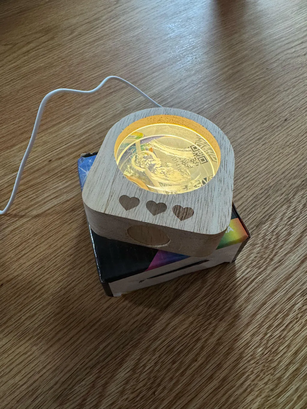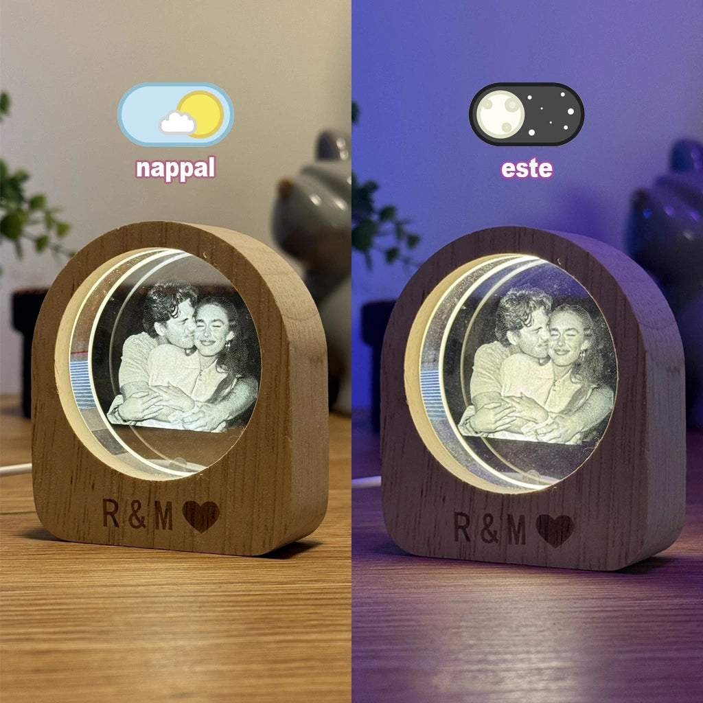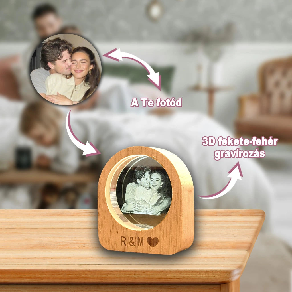 Ez a lámpa hihetetlenül szép, a 3D fotó életre kelti az emlékeinket. A fa keret hozzáadja az eleganciát.
