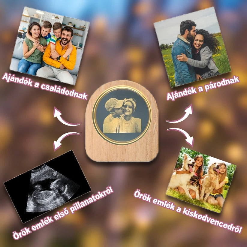 EmlékKristály™ 3D Egyedi Fotó Kristály Lámpa - LED világítás Fa keret, Különleges Ajándék a Szerelmednek, Állatodnak, Családodnak, Szülinapra